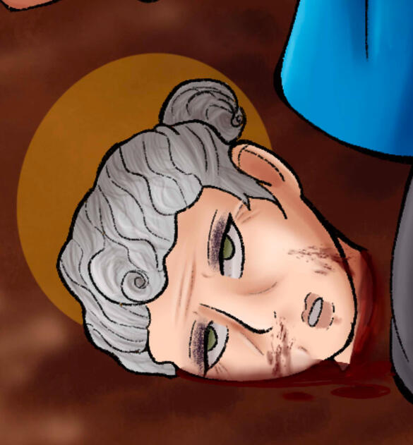 This illustration contains sensitive content such as blood, beheading and themes of religion.
